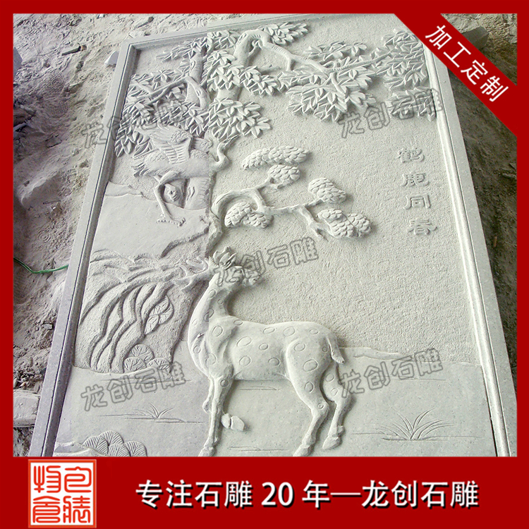 我們平時(shí)看到的浮雕有很多很多,有些是雕刻人物的,有些是雕刻動(dòng)物的,有些是雕刻佛像的,而有些是雕刻花草的等等,有些時(shí)候浮雕旁邊會(huì)有寫(xiě)著幾個(gè)字,就是浮雕的名字,其實(shí)這就是有典故的浮雕。浮雕的典故大都是有吉祥意義或者歷史記錄的人和事,比如我們經(jīng)常看到的有典故浮雕有松鶴延年、鹿竹同春、花開(kāi)富貴、馬到成功、雙龍戲珠等等。接下來(lái)讓我們一飽眼福。1、松鶴延年