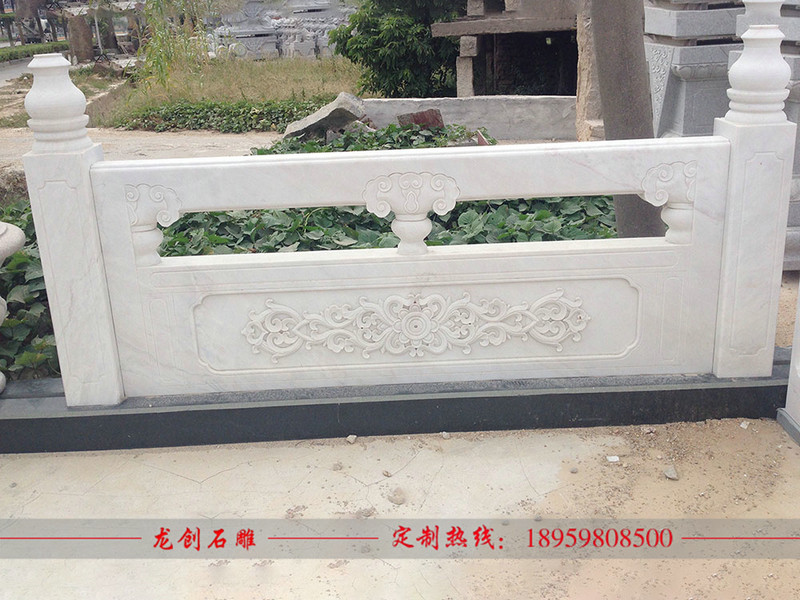 漢白玉欄桿、花崗石欄桿。完整的大理石欄桿由立柱、欄板、抱鼓、花托等幾部分組成。