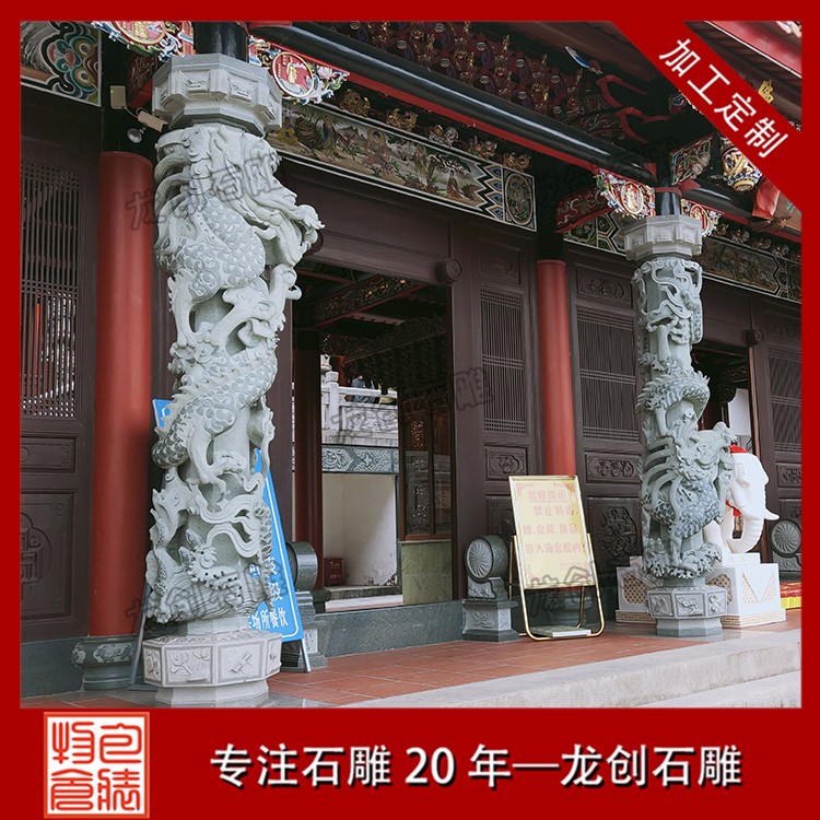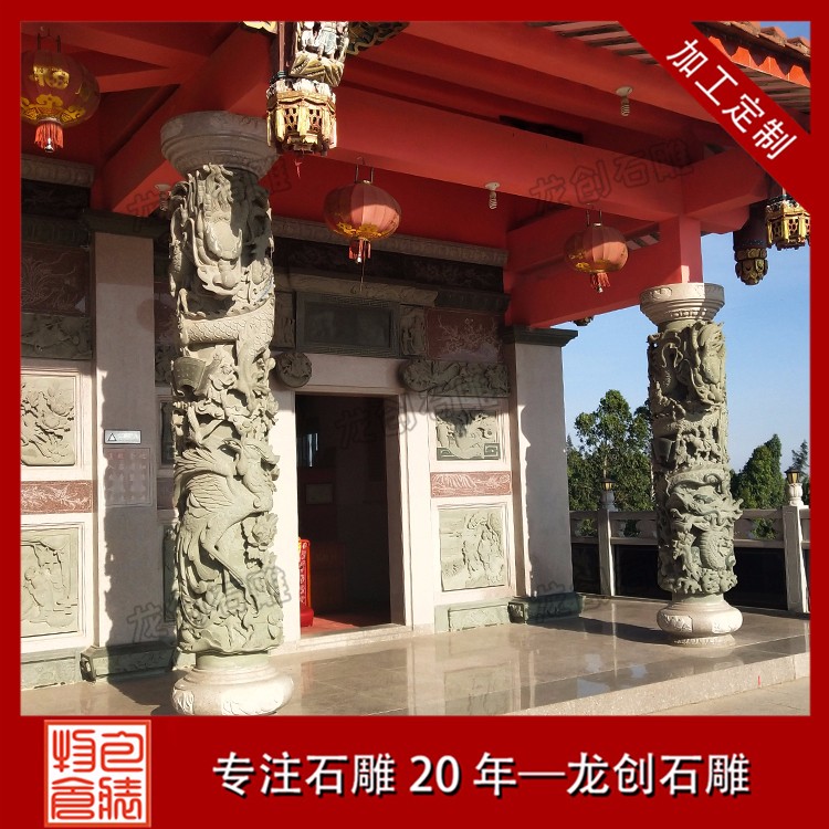 常見(jiàn)寺廟龍柱的制造石材有青石、白石以及其他花崗巖石料,如果雕工要求很復(fù)雜的,一般是以青石為原材料,青石的石料單價(jià)也要貴很多。做工簡(jiǎn)單的,則一般建議用普通的白石即可。普通的白石龍柱會(huì)比較便宜,一般三四萬(wàn)塊就能買(mǎi)到一對(duì)合適的3米高龍柱,以浮雕技藝為主。而真正價(jià)格較高的龍柱則一般是青石龍柱。龍柱一般有單龍和雙龍之分,雙龍的略貴一些,單龍的便宜一點(diǎn)。龍柱上面除了雕刻龍外,還會(huì)雕刻很多其他圖案。中華民族的圖騰是龍圖騰,中國(guó)人是龍的傳人,所以龍柱是無(wú)論什么國(guó)內(nèi)宗教場(chǎng)所、公眾場(chǎng)所都會(huì)擺立的。