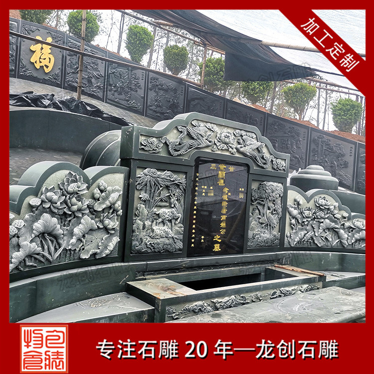 在墓園會使用到的石雕制品有很多,除了我們一開始會想到的石雕墓碑以外,還有些墓園會安裝石雕欄桿和石雕涼亭、石雕浮雕,墓園石雕欄桿除了起到安全防護作用外,還具有裝飾作用,而石雕涼亭的主要作用就是供人休息用的,石雕浮雕主要作用就是裝飾了,此套石雕墓圍的浮雕圖案是二十四孝。