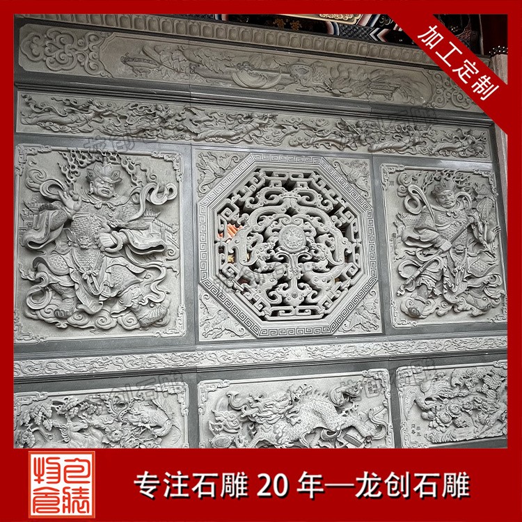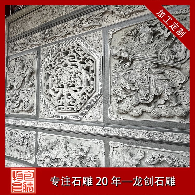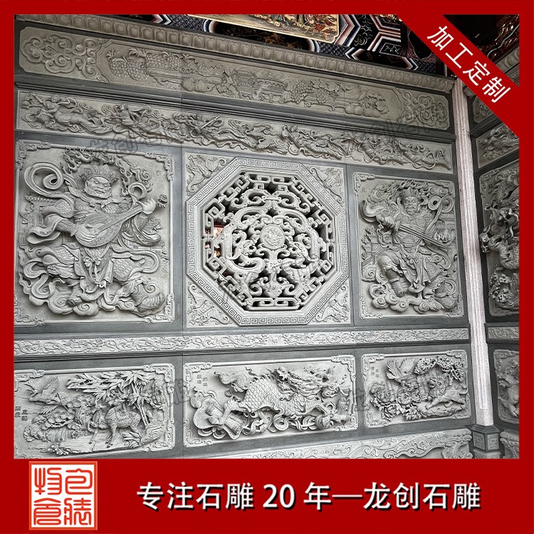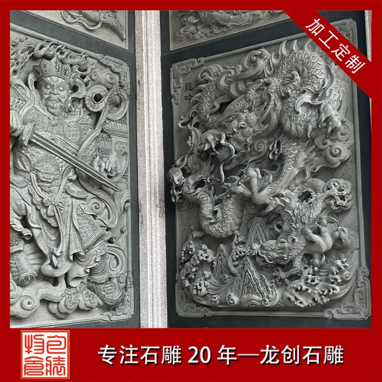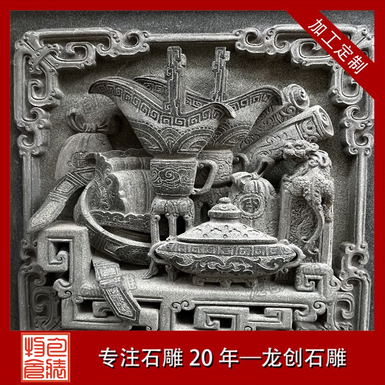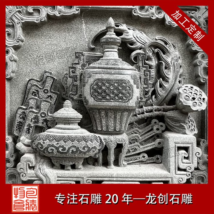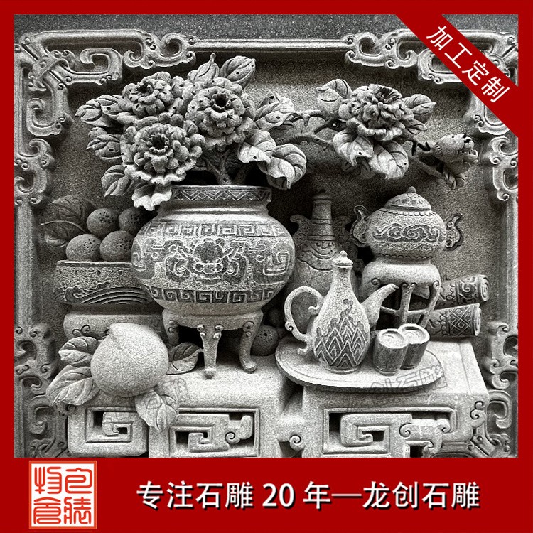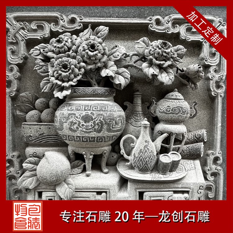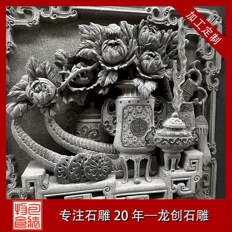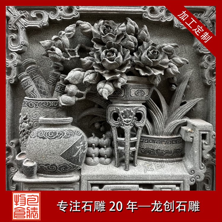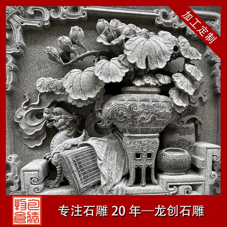 在工藝技法上,這類浮雕注重平面構圖向立體空間的轉換。采用寫實與寫意相結合的表現(xiàn)手法,花朵枝葉的形態(tài)力求準確,而整體布局則講究虛實相生。雕刻時通常分三個層次處理:遠景層淺刻勾勒,中景層適度凸起,近景層重點刻畫。特別是禽鳥的喙眼、花瓣的翻卷、葉片的脈絡等關鍵部位,通過精細的刀工呈現(xiàn)出生動的細節(jié)質感,使堅硬的青石呈現(xiàn)出柔美的自然氣息。