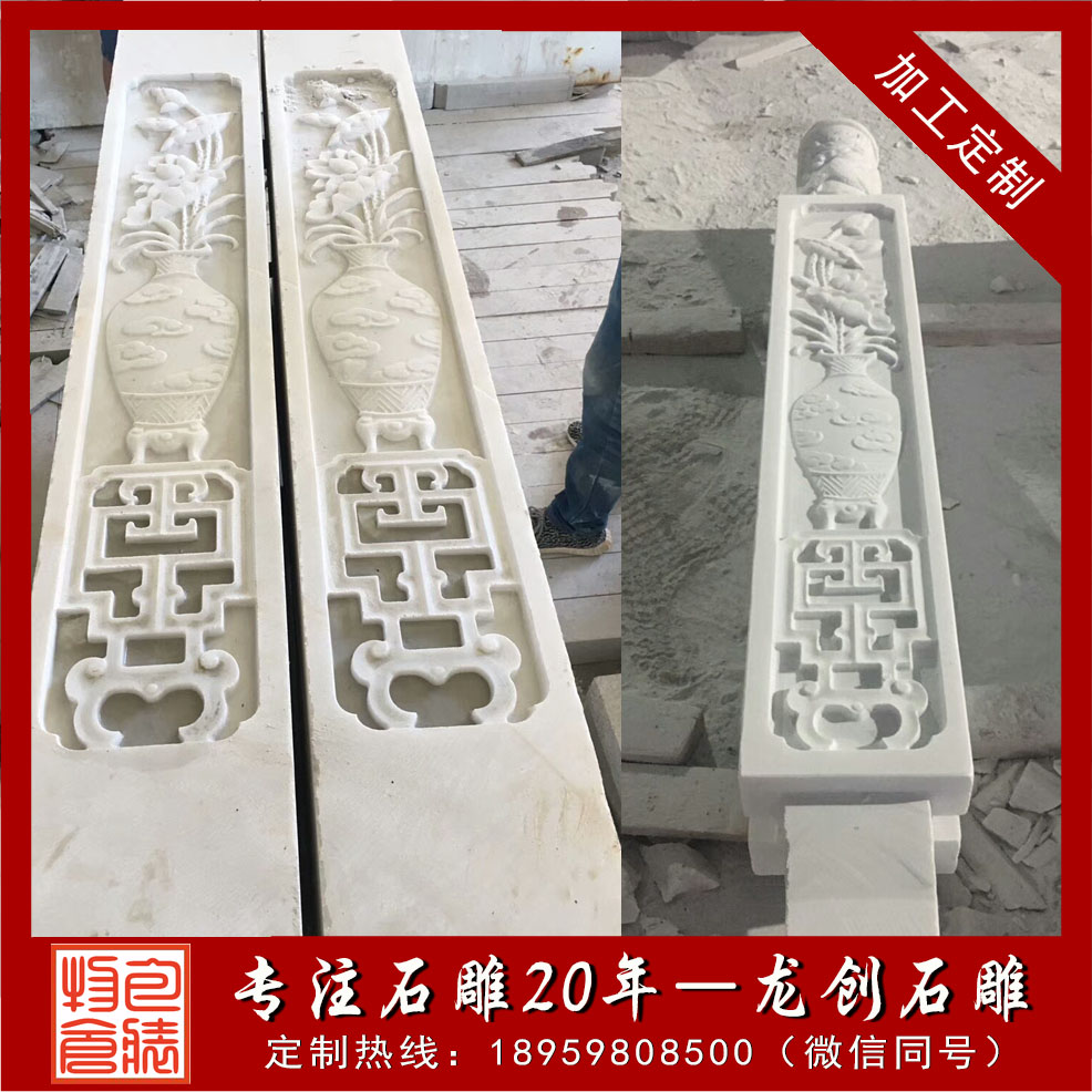 項目名稱:漢白玉欄桿安裝地點:廣東梅州靈化寺材質:漢白玉漢白玉的優點:其顏色潔白,石質堅硬,在陽光的照射下閃閃發光,有種高貴的氣息,而且漢白玉自身材質的特點可以雕刻出各種圖案,各種人物像、花草圖案、場景等等。漢白玉欄桿以優質的漢白玉石材為基礎,加以高浮雕、淺浮雕、透雕等各種石材雕刻技術,打造出一件件令人贊嘆的漢白玉欄桿作品。龍創石雕是一家專業石欄桿制造商,多年來一直專注在石欄桿的生產。如果您有石材欄桿工藝質量,石材欄桿大小,石欄桿的價格等等相關問題,歡迎致電龍創石雕的業務經理咨詢。