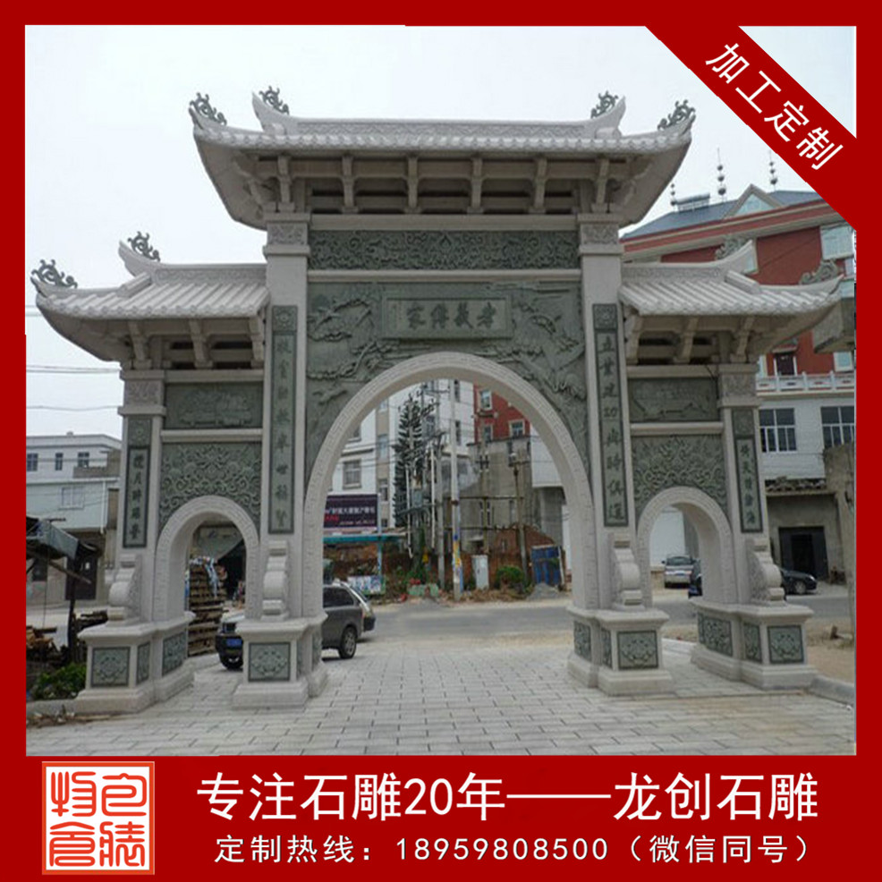 訂購石雕山門牌坊 山門牌坊廠家龍創(chuàng)石雕歡迎您的來電!