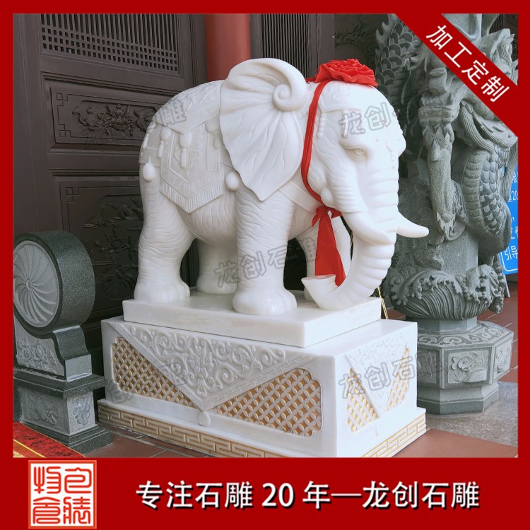 寺廟石雕大象和公司大門口的石雕大象標(biāo)準(zhǔn)都是眼睛傳神,有福相,雕工精美,有一點(diǎn)不同的就是雕刻圖案不一樣,公司大門口擺放的石雕大象一般雕刻福、吉祥、如意、納財送寶等圖案,寺院大門口擺放的大小一般是雕刻寶相紋、經(jīng)書、蓮花、祥云等圖案。