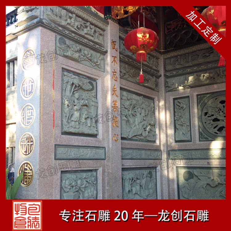 宗祠青石浮雕墻在現(xiàn)在的建筑中應用很廣泛,祠堂浮雕是雕刻的一種,雕刻者在一塊平板上將他要塑造的形象雕刻出來,使它脫離原來材料的平面。福建宗祠青石浮雕墻是雕塑與繪畫結合的產(chǎn)物,用壓縮的辦法來處理對象,靠透視等因素來表現(xiàn)三維空間,并只供一面或兩面觀看。福建宗祠青石浮雕墻按需定制,找惠安龍創(chuàng)石雕。