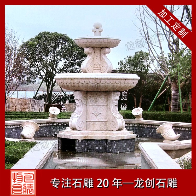園林景觀石雕噴泉水缽雕塑是一種石材做成的盆狀或者罐狀的石雕作品,一般來說周邊有雕刻的紋路以及雕刻的附加飾品,然后組合成一個比較大的裝水,儲水的容器,并且部分石雕噴泉雕塑利用水壓把水從石雕噴泉雕塑的上端噴或者流出,形成一種特別的景象的石雕產品。石雕噴泉雕塑作為一種裝飾產品,所以一般適用于比較高檔的裝飾,不過隨著社會的發展,現在的水平高中低檔的價格可以滿足不同客戶的需求,從高端裝飾慢慢的成為了家居擺件,公司擺件,公園擺件,景區擺件等等。
