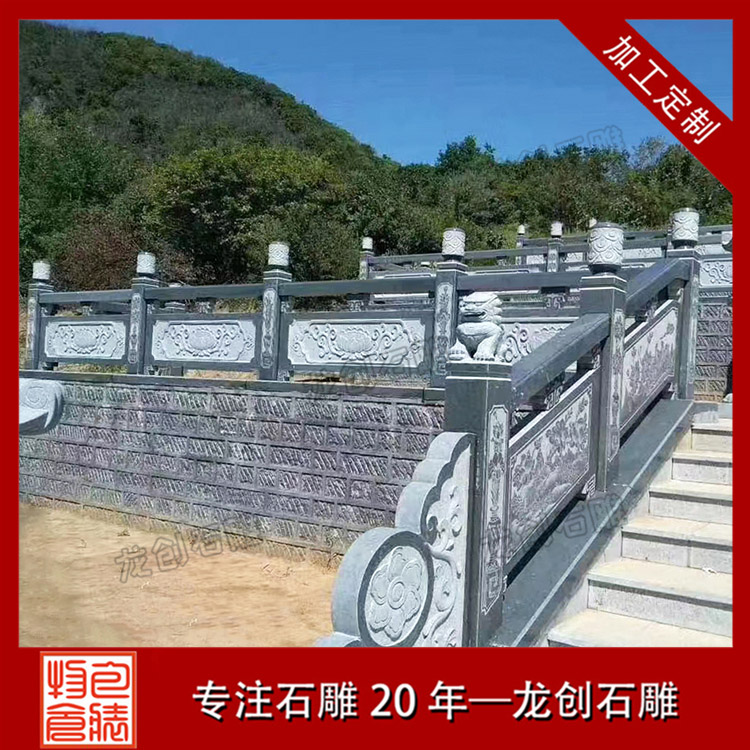 花崗巖欄桿選用優質天然花崗巖石材。常用的有芝麻白、芝麻灰、白麻、黃銹石、五蓮紅、五蓮花。花崗巖石欄桿是比較常用的欄桿材質。其硬度高、抗風化、后期基本無需打理。多用于河道、橋梁、景區等。石材顏色多樣,可選度高。常用做法為線雕、鏤空、浮雕。