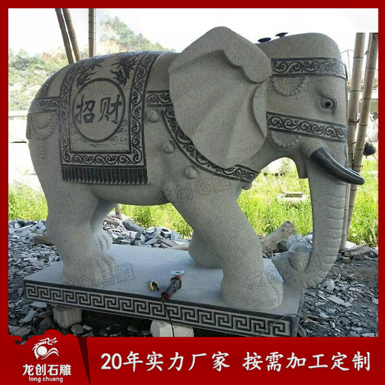 石雕大象在一些宗教廟宇的場(chǎng)所擺放很多見,寺院的花崗巖石雕大象擺件通常會(huì)帶有明顯的宗教色彩,比如那些六牙石雕大象,90%都是擺放在寺廟中的。為什么這么說(shuō)呢?石雕大象本身是兩個(gè)牙齒的,如果做成六個(gè)象牙,那就是代表了佛教的六波羅蜜,是修行成道的六個(gè)法門。一對(duì)飽含佛教文化以及中華文明元素的花崗巖石雕大象,主要表現(xiàn)在以下幾個(gè)部位。首先是腳趾部分。這對(duì)大象的腳趾部分一改以往的腳趾貼地的做法,而是將腳趾王上挪移了一點(diǎn),這是因?yàn)樵O(shè)計(jì)時(shí)將大象腳站在蓮花臺(tái)上,帶有濃厚的佛教文化。大象的側(cè)身部雕刻的卍字符號(hào)是如來(lái)胸前的圖案,也是佛教文化中非常見的一種標(biāo)識(shí);第三是大象的象牙比實(shí)際的動(dòng)物大象多了4根,這六根象牙代表著佛教的六度,是到達(dá)西方極樂世界的六個(gè)方法。 象諧“祥”音,所以常有吉象之稱,適合擺放在家居別墅大門口,建筑小區(qū)門口、酒店別墅、寫字樓等各種場(chǎng)景擺放。
