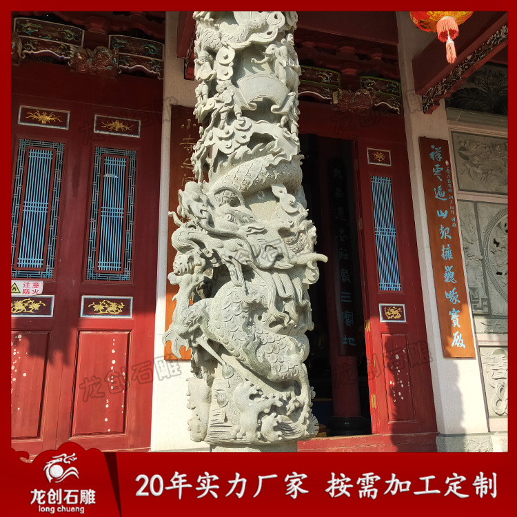 石雕龍柱在當今社會的應用非常廣泛,通常在寺廟、廣場、公園等都可以見到石雕龍柱,安裝在寺廟的龍柱較為常用石料的是青石龍柱,且工藝要求高。寺廟石雕龍柱由多種工藝制作,有圓雕,透雕,線雕,平雕,浮雕等工藝。石雕龍柱外形有圓形石雕龍柱和棱形石雕龍柱。泉州青石龍柱廠家,選匠心制作二十年,龍創石雕。