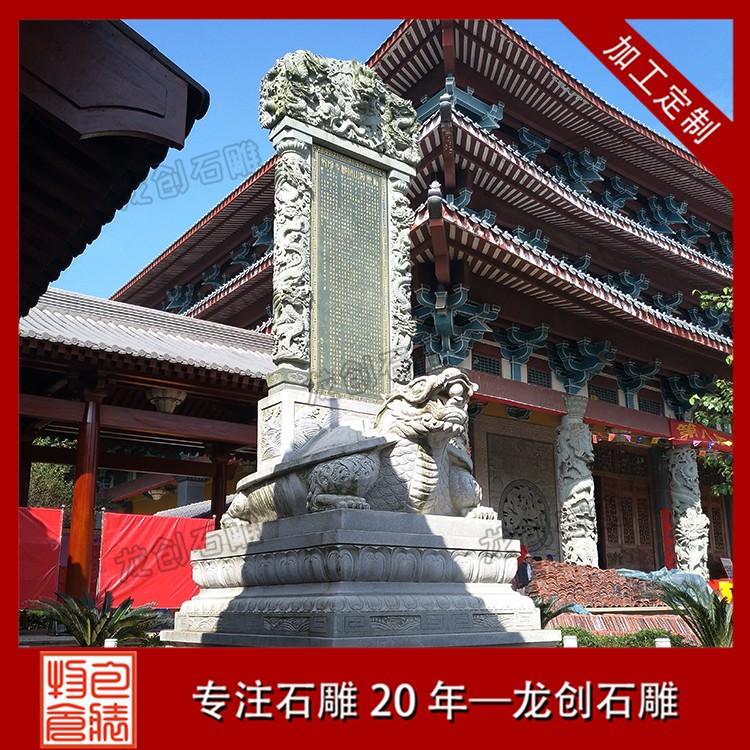 龜馱碑一般采用天然石材制作,常見的材質(zhì)有大理石、花崗石、青石等。這些石材都具有堅硬、耐磨、耐久的特性,能夠經(jīng)受住風(fēng)吹雨打和時間的考驗。同時,它們也具有良好的雕刻性能,可以雕刻出精細(xì)的圖案和文字。