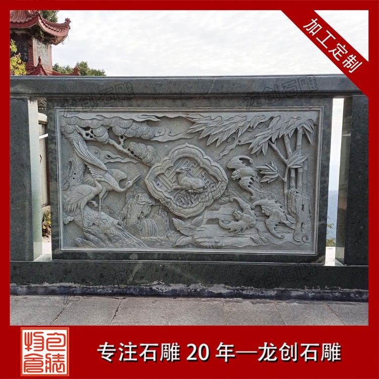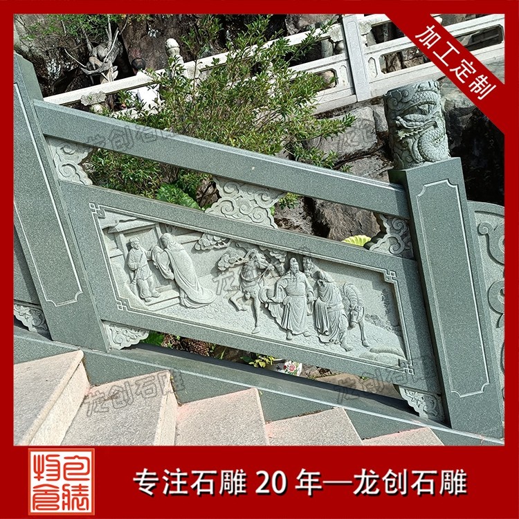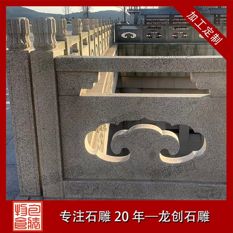 打磨與雕刻,是賦予石雕欄桿靈魂的關鍵環節。匠人先用粗磨工具去除石材表面的粗糙痕跡,再用細磨工具反復打磨,讓欄桿表面平滑細膩,觸感溫潤。雕刻環節更是考驗匠人的功力,手工雕刻與數控雕刻相輔相成,淺雕、深雕、鏤空雕等多種技法靈活運用,祥云的飄逸、花鳥的靈動、人物的神態,都在匠人的刀下被展現得淋漓盡致。每一刀都精準有力,每一處細節都精益求精,既保留了石材的天然質感,又賦予了其人文溫度。最后,通過專業的拋光與防護處理,讓石雕欄桿的光澤更持久,防水防污、抗腐蝕能力更強,得以歷經歲月打磨而依舊熠熠生輝。