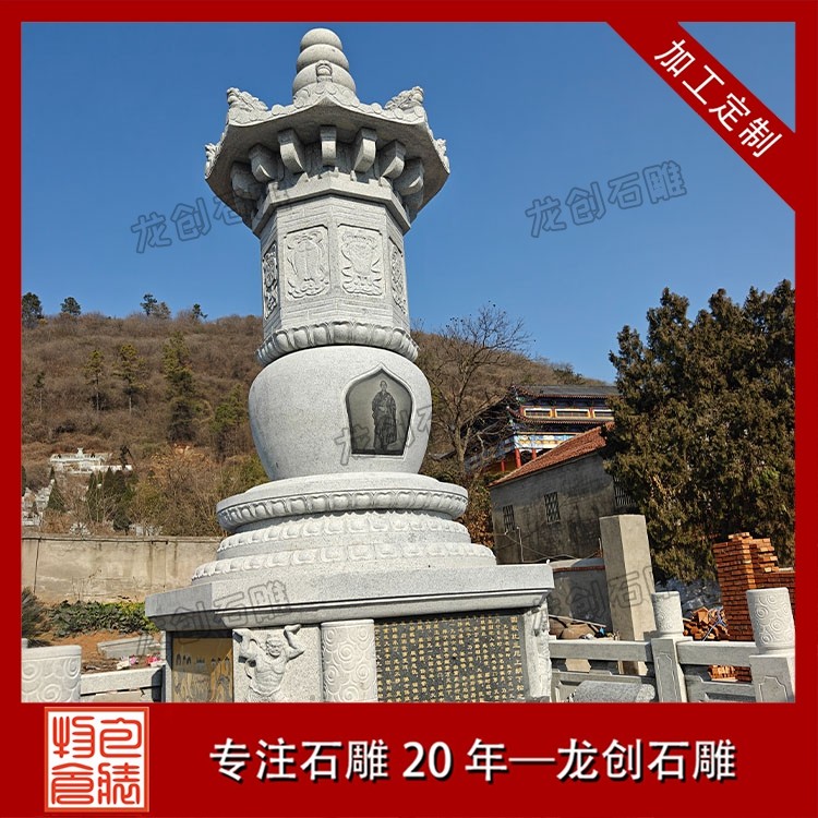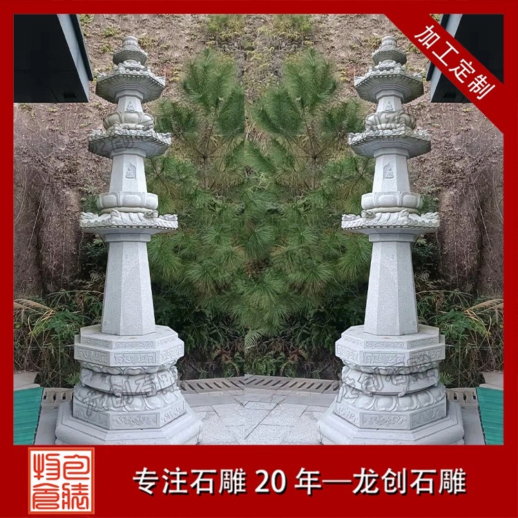 專為寺廟場景打造的雕刻石塔,更注重宗教內涵與藝術表現:經幢塔:刻有經文咒語,供信眾繞行祈福;舍利塔:供奉高僧舍利,造型精致莊重;鎮寺塔:立于寺院中軸線,成為視覺與精神的中心。
