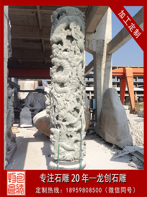 石雕龍柱生產廠家的加工定制及其他服務各有不同,惠安龍創石雕工藝有限公司秉承著以誠信為本,質量第1的原則,將石雕藝術與文明相結合,將石雕中華文明推向全世界。我司在運送方面以汽運與海運相結合的方法,以快捷的方法送達。咱們在包裝方面以木架的形式將產品包裹起來,并且在產品底部及四周放置泡沫海綿、以避免在運送中發生不必要的損失。我司在產品售出后一個月內給予客戶1次的產品維護作業。惠安龍創石雕歡迎您的來電咨詢。