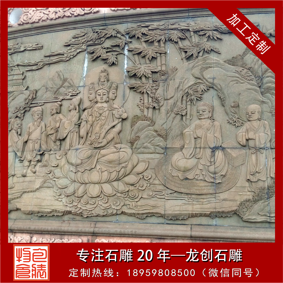 佛教寺廟浮雕壁畫所雕刻的內(nèi)容涵蓋了許多方面,有的是寺廟的歷史沿革,有的是諸佛菩薩的經(jīng)典典故,有的則是寺廟供奉主佛、菩薩的一些人物故事,這些所稱的故事中必然是在佛經(jīng)中有明確記載的。這種浮雕壁畫一般會采用青石或芝麻黑花崗巖石料,是因為這些石材的顏色相對深一些。在雕刻較多的人物形象時,可以清晰地體現(xiàn)出來,包括人物的每一個動作,而這是其他石材沒辦法達到的效果。