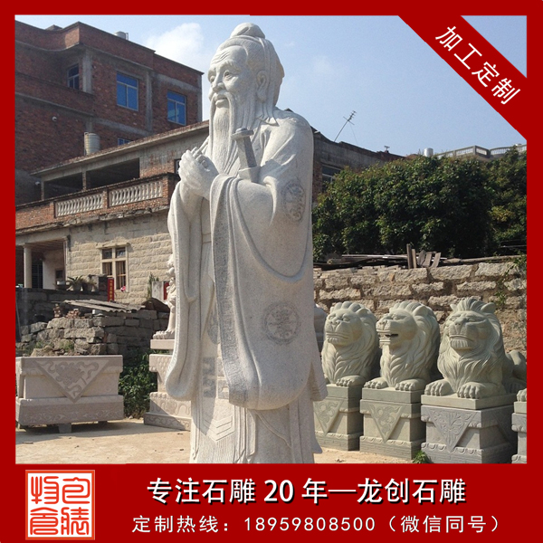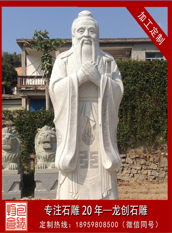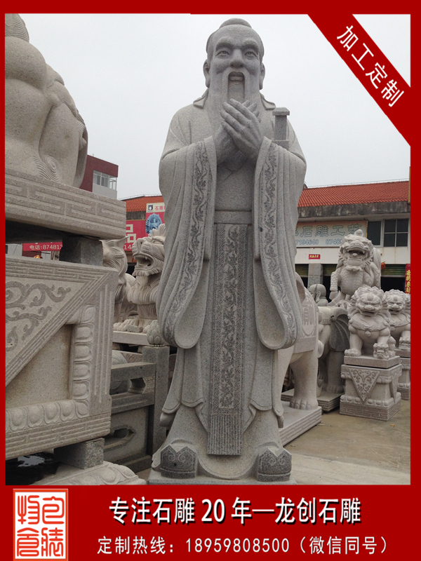 石雕孔子像是指用天青墨玉、霞玉、緬甸玉、漢白玉、墨玉、佘太玉、砂巖、大理石、花崗石、銀灰白石、雪花白等石材玉料雕刻的孔子像。石雕孔子就是孔子雕像,又名石雕孔子行教像,孔子標準雕像。