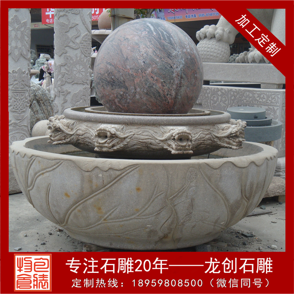石材風(fēng)水球是常見(jiàn)的風(fēng)水物品,是人們的信仰所在。風(fēng)水球通常為圓形狀。通常有放在陽(yáng)臺(tái)欄桿上、圍墻上、及噴泉上,給人們帶來(lái)好運(yùn)。生命在于運(yùn)動(dòng),滾動(dòng)顯示靈氣。設(shè)置于家中,生動(dòng)有趣,增添靈氣,點(diǎn)綴生命之光彩;如將大型風(fēng)水球安裝于賓館、寫字樓、會(huì)場(chǎng)別墅門庭,增添氣勢(shì),象征生機(jī)勃勃,財(cái)源滾滾。風(fēng)水球石料有大理石、花崗巖、漢白玉、砂巖等。風(fēng)水球造型比較多樣,常用的為流水缽式風(fēng)水球,及底托為圓盤形,此類風(fēng)水球可單層風(fēng)水球、雙層風(fēng)水球、三層風(fēng)水球、多層風(fēng)水球。除此之外還有方形風(fēng)水球、蓮花風(fēng)水球、花型風(fēng)水球等等。