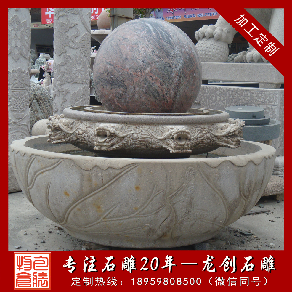 石雕風(fēng)水球常見的石料有黃銹石、楓葉紅、松香玉、山西黑、白麻石、大理石、花崗巖、漢白玉等;轉(zhuǎn)動的身軀,舞動的旋律,潺潺流水托起一個偉大的奇跡!讓我們一起感受生活,感受生命,感受偉大的力量,感受人生的哲理!
