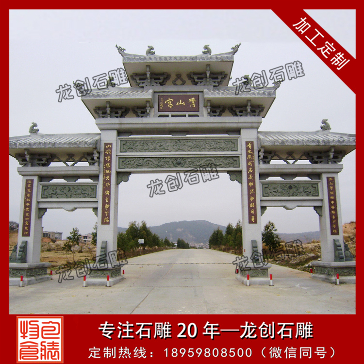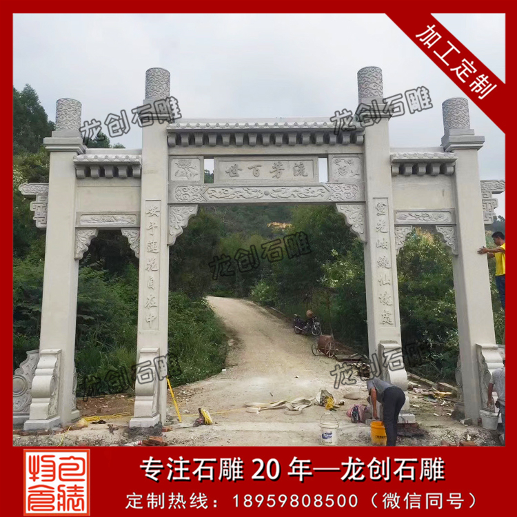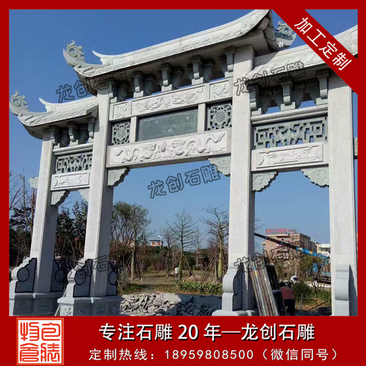 石牌樓上面雕刻有各種吉祥寓意的浮雕圖案,如獅子、龍鳳、麒麟、蝙蝠、梅蘭竹菊、荷花、牡丹等寓意吉祥的浮雕圖案。石牌樓多少錢?石牌樓價格主要受到材料成本的影響,如果材料成本可控,那么石牌樓價格不會太高。比如做一個總寬12米的牌樓,材質(zhì)是青石的,做出來的石牌樓價格在15萬左右,而這樣的價格一般是在簡單工藝的基礎(chǔ)上可以做出來。如果我們想要更高的工藝要求,以及想要一些款式比較大氣的,那么這其中的價格可能會差5-8萬的差別。