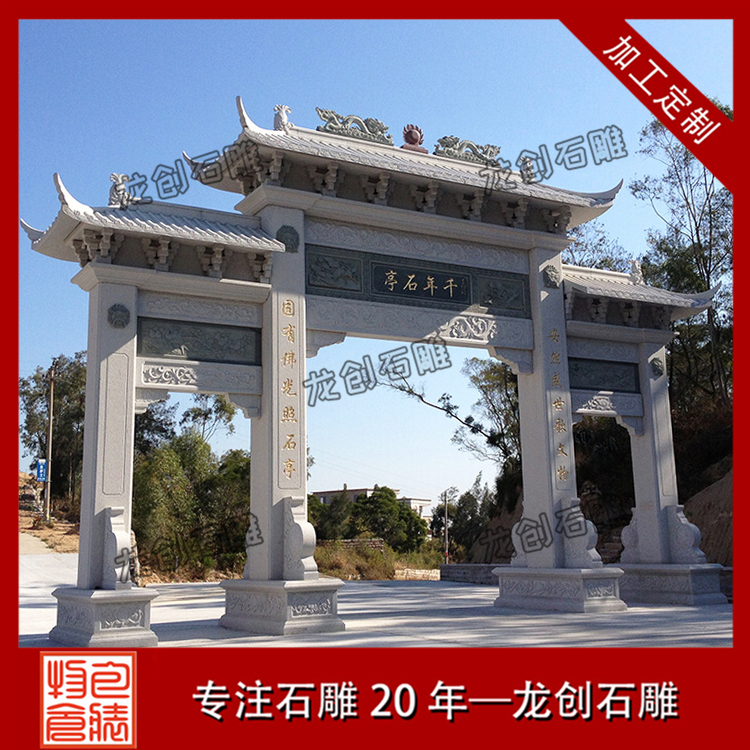 惠安龍創石雕廠家直銷花崗巖石牌樓,多種樣式,規格齊全,歡迎隨時來電咨詢。