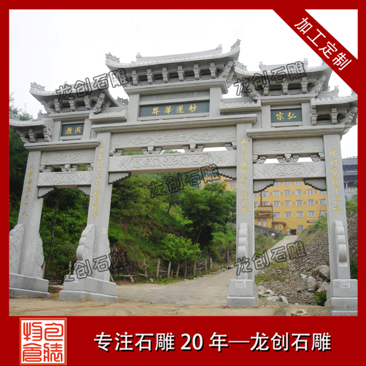 石雕山門牌坊作為現(xiàn)代成功標(biāo)志的古建筑文化代表,被全國各地的農(nóng)村,村莊,寺廟,景區(qū),公園各大建設(shè)所大量使用,石雕牌坊有著與眾不同的外觀形態(tài)、多種多樣的社會功能、古老悠久的歷史淵源、豐富深厚的文化內(nèi)涵,可以說是華夏大地上的一道獨特的人文景觀。