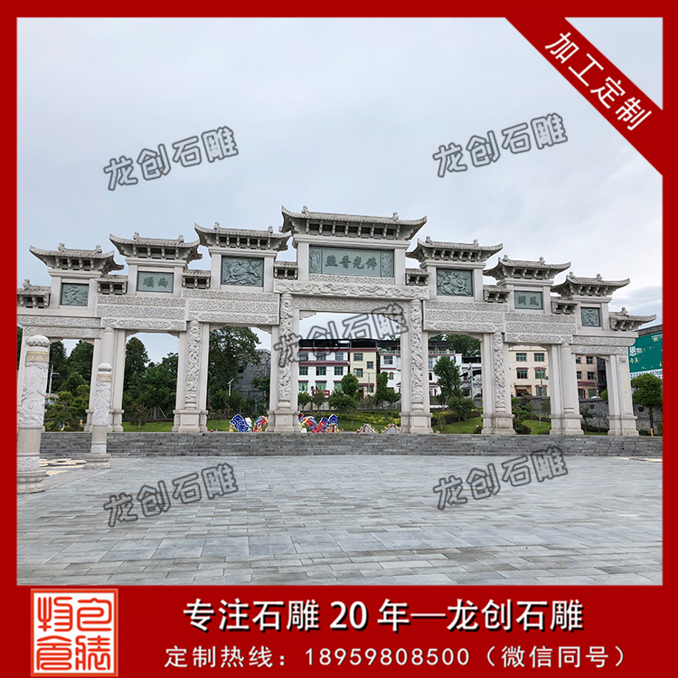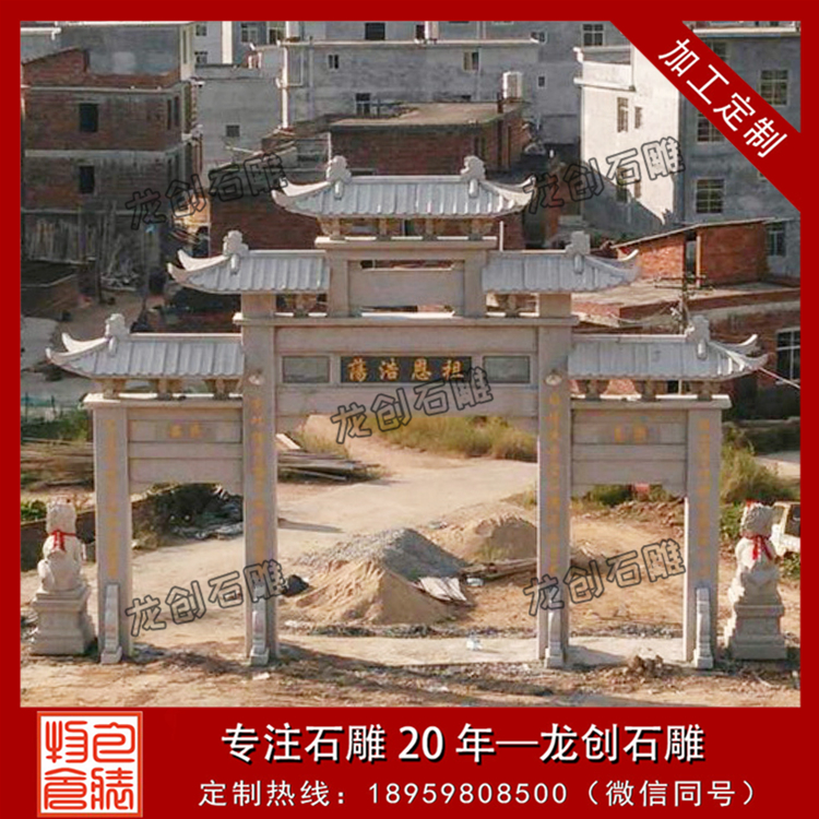 2、現代石雕牌坊設計要注意和實地環境的結合?,F代化的石雕牌坊建筑可以是在休閑區域,也可以是在商業廣場,還可以在景區內建造,常見的就是在仿古街的入口處修建石雕牌坊,既能夠體現古色韻味又能夠吸引游人的關注。如村莊牌坊的修建,就要和村莊的風俗文化相結合,只有這樣才能和當地環境文化融為一體。無論是在哪里進行建造石雕牌坊,一定好和當地的環境進行有機的結合,這樣才能讓建筑和環境融為一體,才能讓建筑為周圍的景色帶來亮點。
