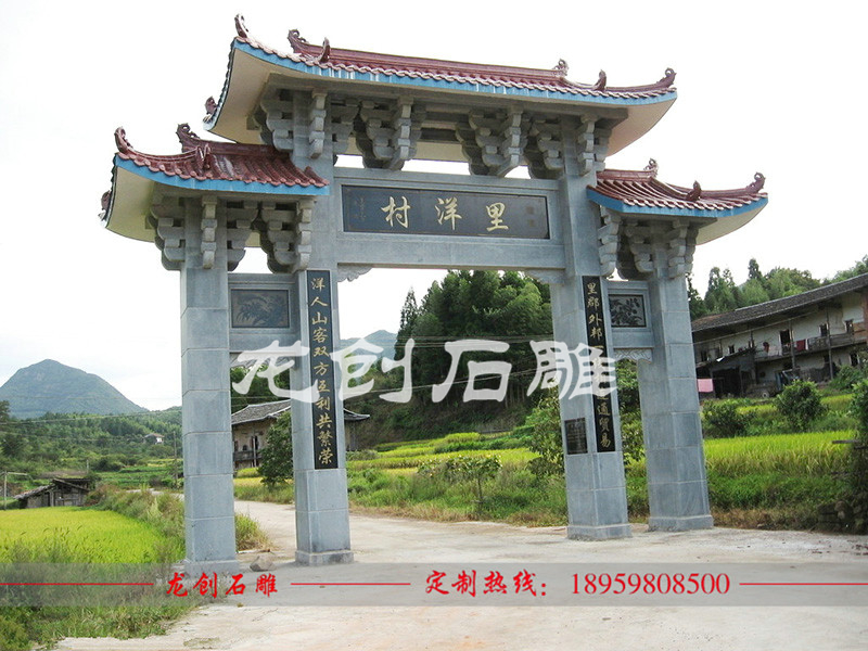 石雕農村牌樓已成為村莊入口標志,石牌坊又可以稱為石牌樓,有著悠久的歷史,現在農村石雕牌樓已經成為村莊入口標志性建筑。在我國的城鎮鄉村,隨處都可見到各種造型的石雕農村牌樓,在鄉村旅游中發揮了重要作用。石雕生產牌樓廠家